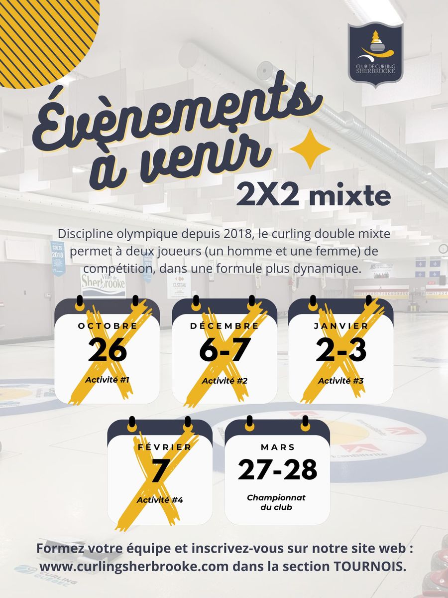 Le 7 février, aura lieu la 4e activité préparatoire de curling double mixte. Cliquez ici pour l'inscription (date limite le 1er février).